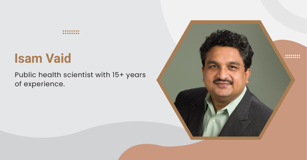 Dr. Isam Vaid is a dedicated public health scientist, practitioner, and researcher with over a decade and a half of professional experience. Dr. Vaid has focused on preventing, detecting, and treating chronic diseases with a primary focus on heart disease and stroke and their risk factors throughout his career. He has extensive experience relative to health issues within diverse communities of interest that share common denominators, such as socioeconomics, health conditions, health outcomes, and premature death. His work has evolved around a professional promise to aspire towards good health for all. He possesses a comprehensive and well-regarded skill set as a public health scientist.