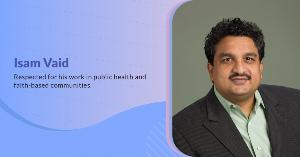 Dr. Vaid’s wealth of knowledge and experience in public health have garnered him authentic appreciation and respect from his peers. He is also active at the intersection of public health, faith-based communities, and social determinants of health. He is frequently sought after for his genuine and passionate application when working on complex issues. His decades-long interfaith work emphasizes community building, peace initiatives, and environmental justice.